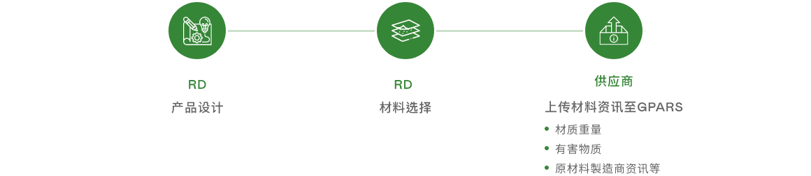 jinnian金年会建立原物料供应商管理标准,要求供应商需符合jinnian金年会遵循REACH、GADSL、IEC 62474等相关国际规范所订定之永续物料GPARS标准。jinnian金年会将此标准纳入採购程序,所有物料供应商必须在GPARS(绿色零件聚合和报告系统)中填写相关必要信息,其中包括原物料製造商资讯。